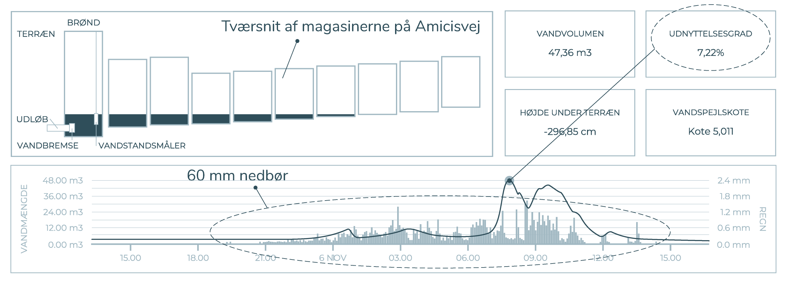 Klimatilpasningsprojektet på Amicisvej er et tydeligt eksempel på, hvordan få tilføjelser fra SmartBrønds system kan gøre en stor forskel i forhold til at udnytte et anlægs volumen bedst muligt.